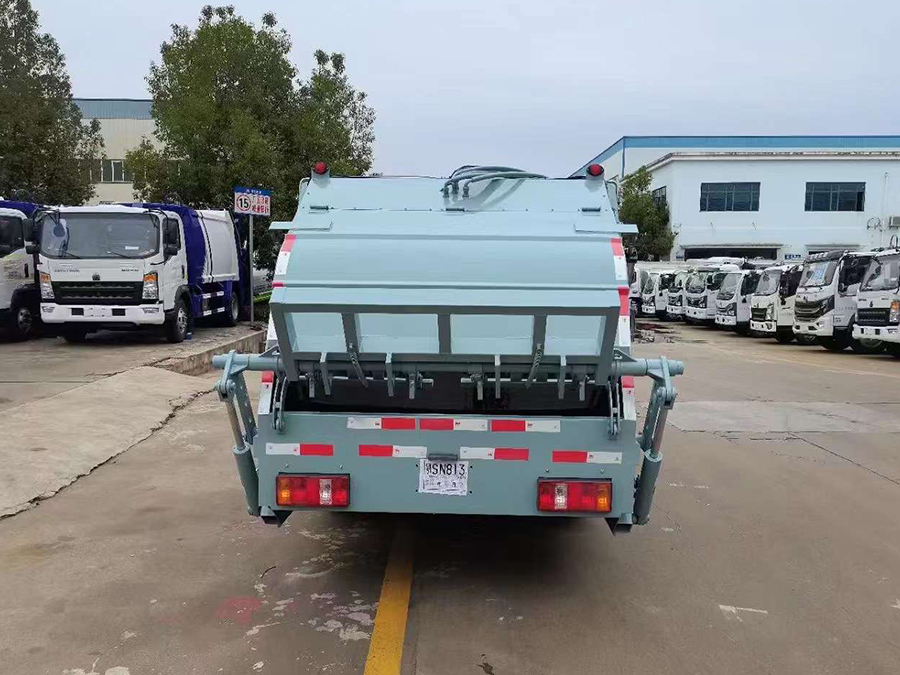 廂體有效容積4.5方,弧形箱體,采用專用鋼板制作,配套威森博樂多路閥,徐州全球通液壓油鋼管,皖液液壓油泵,填裝器舉升油缸帶液壓鎖裝置,采用PLC電控系統(tǒng),帶一鍵操作和手動(dòng)操作兩種模式,電控操作盒3個(gè),分別安裝在駕駛室內(nèi)及車尾部各一只,方便操作,帶污水收集箱,尾部帶厚橡膠密封壓條。