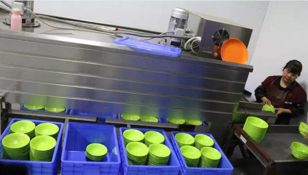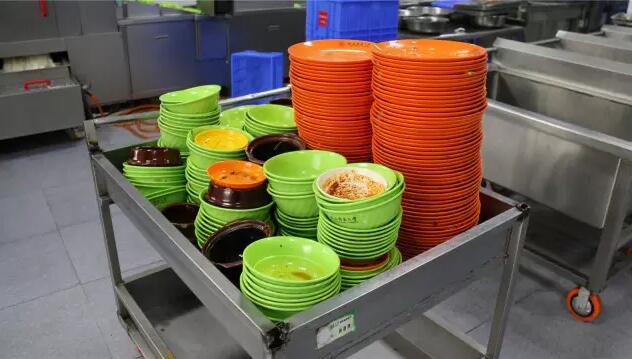 這樣的學校食堂洗碗機,在第一飯堂負責該校區餐具三個時段的集中洗消與配送,整個流程是這個樣子的: