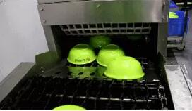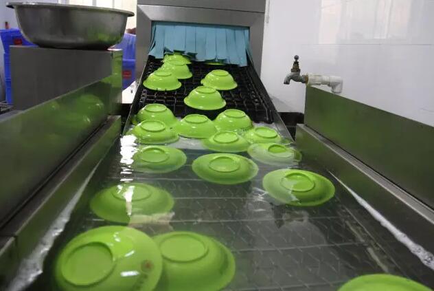 使用過的餐盤經周轉車運送至洗消線后,由工作人員將餐具放置在洗消線上,洗消流程開始。