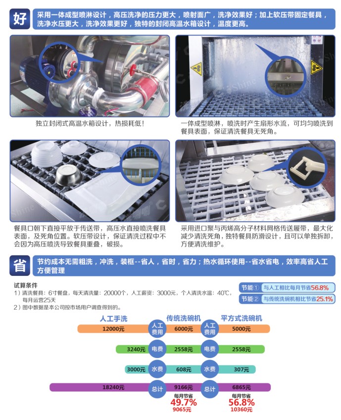 ▲ 減少餐具破損 ▲ 節水、節電、節人