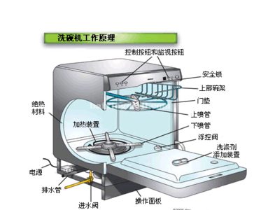 洗碗機是自動清洗碗、筷、盤、碟、刀、叉等餐具的設備,按結構可分為箱式和傳送式兩大類。洗碗機為餐廳、賓館、機關單位食堂的炊事人員減輕了勞動強度,提高了工作效率,也節約了成本,增進清潔衛生。