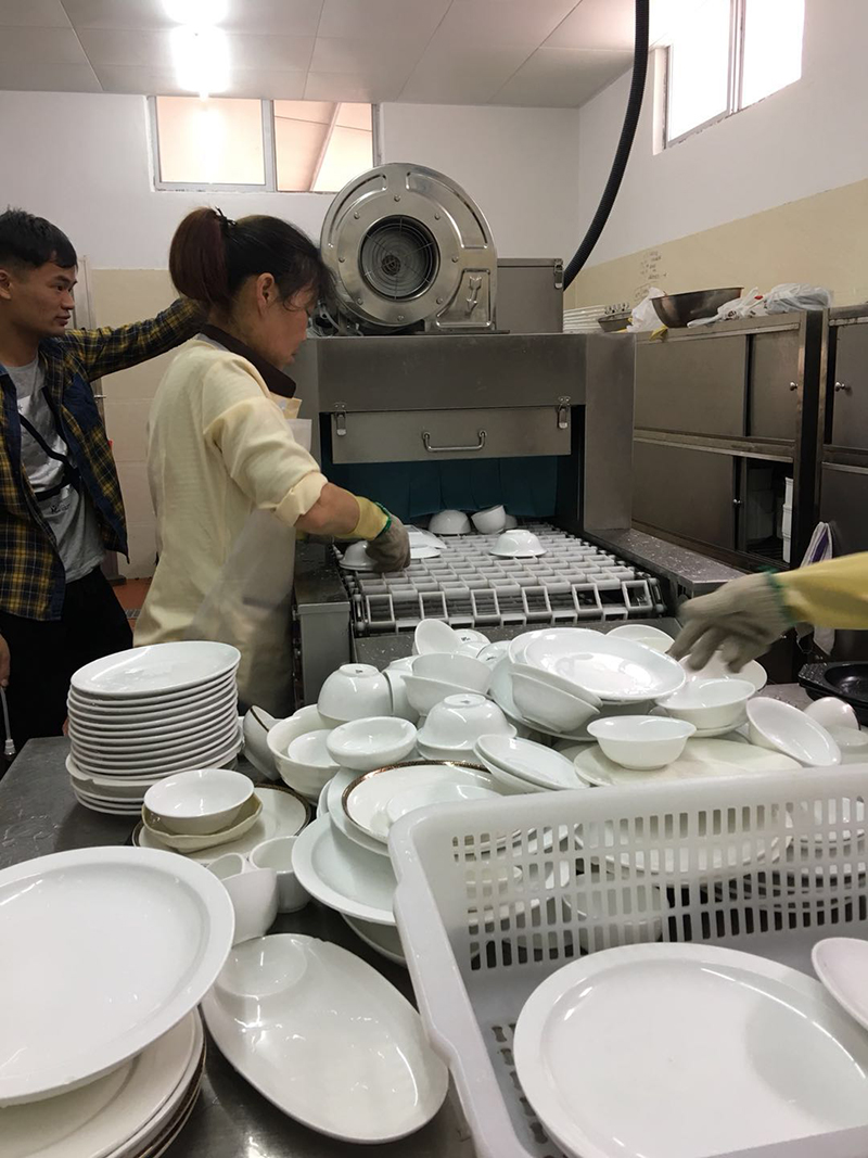 3、放置餐具時,首先將要洗滌的餐具上的骨頭、菜渣、剩余肴料等清理干凈后才能放入碗籃內,以免堵塞過濾器,影響洗滌。