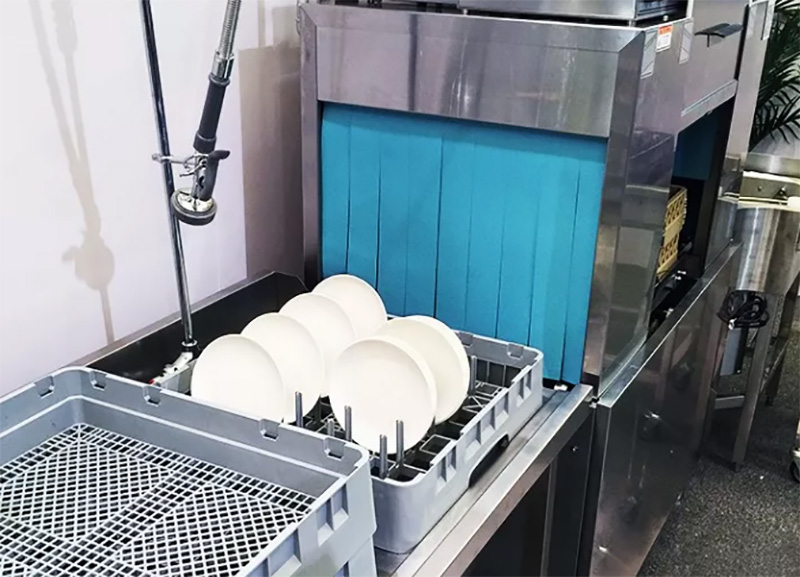 再比如單位食堂,一般多用不銹鋼質地的餐盤或碗,或用密胺類的餐具,這些餐具洗凈難度較大,選擇高效、去污強的商用洗碗機方可滿足其要求:從自動除渣、自動清洗,科學洗碗,使餐具不僅能徹底洗凈,還能使各類細菌被殺滅。