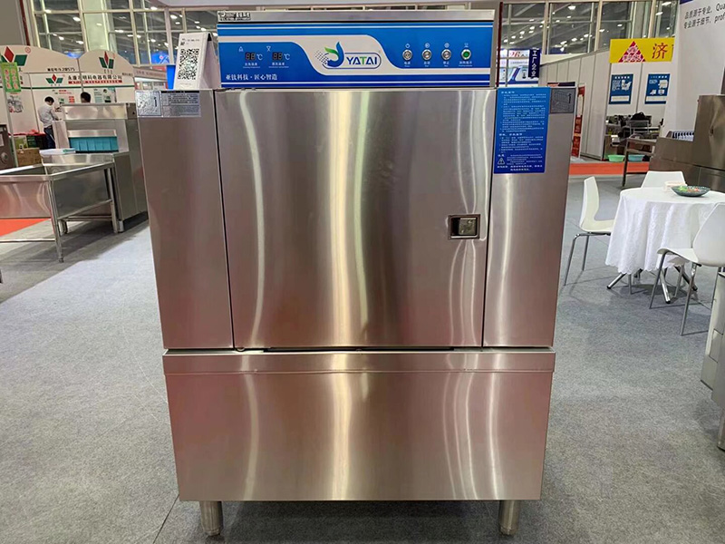 YATAI通道式GYT系列洗碗機,是我公司全面引進德國先進技術,結合中外飲食文化而研發設計的無死角自動清洗設備,采用標準單元組合,標準化加工生產制造。主要由,清洗單元、高溫凈水漂洗消毒單元(85℃)組成。機器清洗后餐具,經衛生部門檢測,各項衛生指標均符合國家相關標準。全機采用優質的不銹鋼板制造,經久耐用。噴嘴采用304不銹鋼一體沖壓扇形噴嘴,噴洗時產生扇形水流,可均勻噴洗餐具表面,保證清洗餐具無死角。餐具口朝下直接斜插放于碗框內推進洗碗機,高壓水直接噴洗餐具表面及內部,不留死角。產品性能穩定,使用成本低,操作簡單,安全易維護。